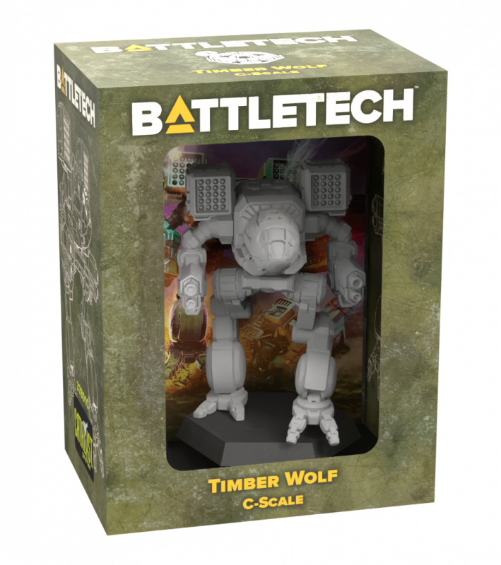 Der „Mad Cat“, der erste OminMech, dem die Inner Sphere begegnete, wurde von ComStar-Analysten aufgrund seiner Ähnlichkeit sowohl mit dem Marauder als auch mit dem Catapult so benannt. Der vom Clan Wolf gebaute Timber Wolf hat sich als nahezu perfekte Verschmelzung fortschrittlicher Clan-Technologien in einer einzigen tödlichen Maschine erwiesen. Diese C-Scale-Miniatur-Box enthält einen 100-mm-Timber Wolf.