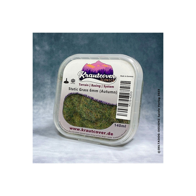 Unsere Static Grass Range kommt in 4 Farben in einem matten Finish, und ist in den Längen 2mm, 4mm und 6mm erhältlich. Die Gräser sind dabei die ideale Ergänzung zu unseren Basecovern und Groundcovern, da ihre natürlichen Farbtöne perfekt zur bestehenden Range passen und sich auch untereinander sehr gut kombinieren lassen. Die stabilen Fasern eigenen sich dabei sowohl für die Base- und Spieltischgestaltung, als auch für die Herstellung eigener Tufts.