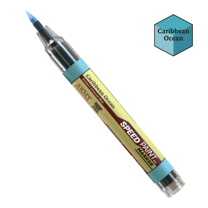Der Speedpaint Marker – Caribbean Ocean bringt ein strahlendes, grünlich-blaues Finish auf eure Miniaturen – ideal für Wasser- und Magieeffekte, Schuppen, exotische Kleidung oder auffällige Details. Mit dem innovativen Marker-Design bemalt ihr eure Figuren schnell, sauber und mit leuchtenden Ergebnissen – ganz ohne Pinsel, Palette oder Wasser.