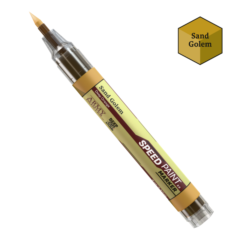 Der Speedpaint Marker – Sand Golem bringt ein kräftiges, tiefes Orange auf eure Miniaturen – perfekt für Lederrüstungen, Umhänge, magische Kreaturen oder strukturierte Details wie Felsen und Sand. Mit dem innovativen Marker-Design bemalt ihr eure Figuren schnell, sauber und ohne zusätzliches Zubehör – ganz ohne Pinsel, Palette oder Wasser.